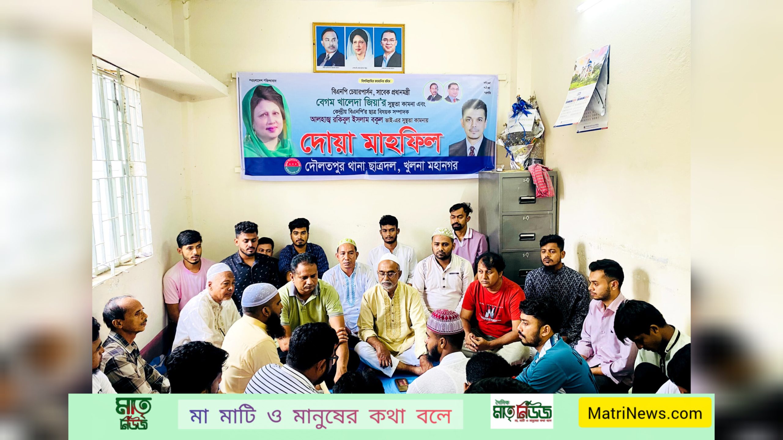 দৌলতপুর থানা ছাত্রদলের উদ্যোগে বেগম খালেদা জিয়া ও বিএনপির ছাত্র বিষয়ক সম্পাদক রকিবুল ইসলাম বকুলের সুস্থতা কামনায় দোয়া মাহফিল